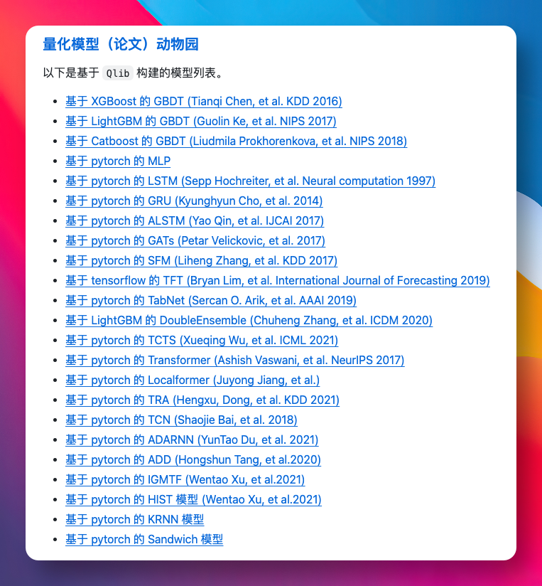 对于想用 AI 做交易的开发者来说,它还内置了大量现成的经典模型。
